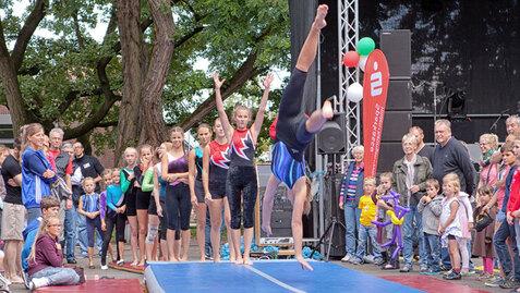 Ein weiterer Schwerpunkt des Trainings liegt in der Erarbeitung der Pflichtübungen des DTB in Vorbereitung auf Wettkämpfe. Um das Training abwechslungsreich zu gestalten und den Spaß am Turnen zu fördern, werden auch weitere Geräte, wie zum Beispiel das Mini-Trampolin und der Airtrack sowie Choreographien in Kleingruppen eingebunden.